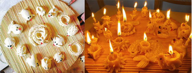 較有特色的是一種面燈,蒸大包子時專門蒸制的,徐州一帶,面燈最負盛名.多蒸成十二種屬相或標志十二個月的面燈.里面放些豆油(香油更佳),另用新棉花做燈捻(芯),晚間點燃后,每個房間都會放一盞,老年人會端著面燈,照遍里里外外,寓意對新的一年美好的祈愿。節日的晚上,兒童多持(或拉著)帶音樂的玩偶燈、紙燈、面燈游玩;遠觀煞是好看;油燃盡后,面燈也烤得黃黃的,食來脆香可口。