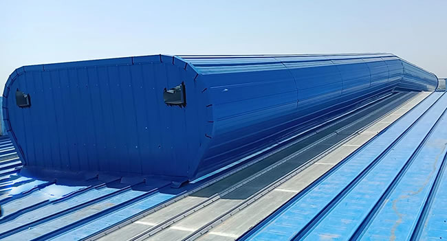 通風天窗是鋼結構廠房屋頂通風器的一種常用類型,其外形優美、圓潤、技術含量高、通風量大、風阻力小、性價比高、而且還可以通過閥板的啟閉來控制溫度和排氣量,適用性非常強,幾乎可用于任何需要通風的工業廠房車間。