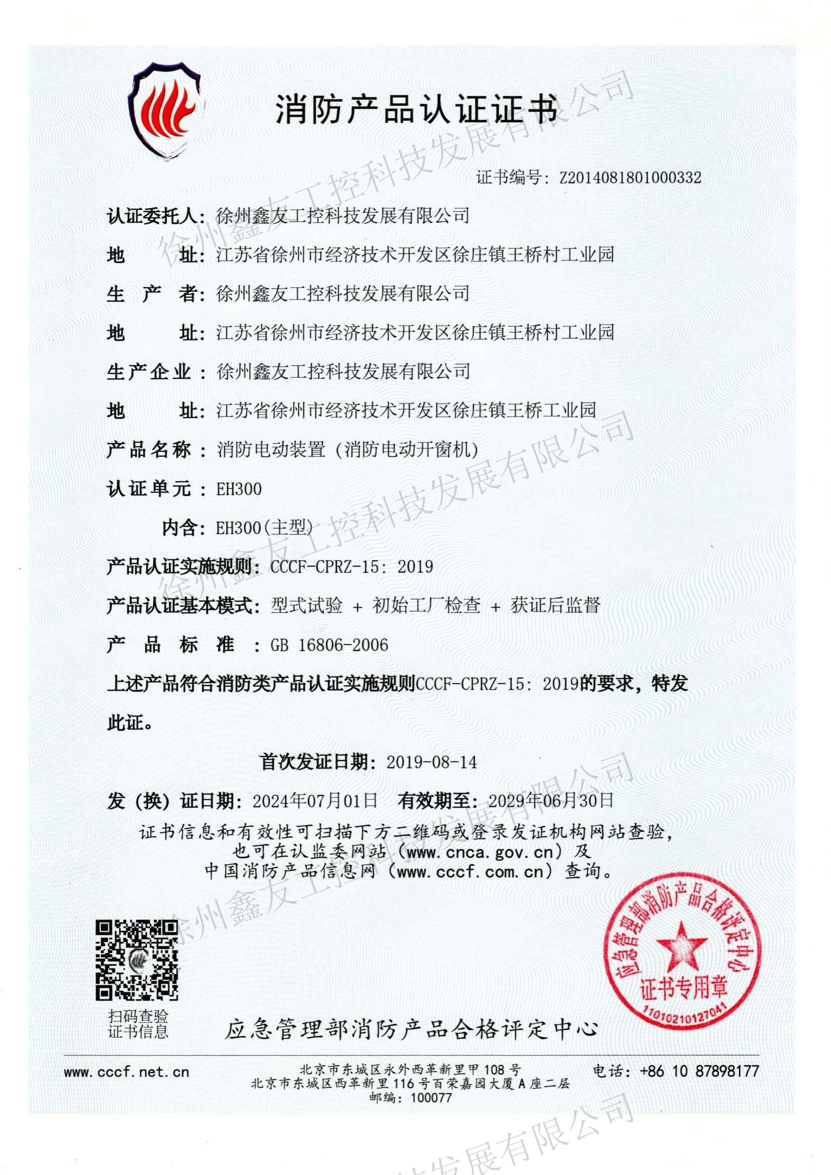 消防產品認證CT300(2019.8.14-2024.8.13)