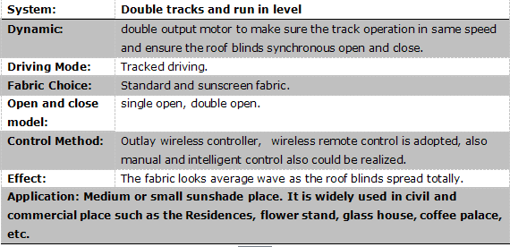 應用場所:彎曲、傾斜或水平的中小型遮陽場所,如酒店、咖啡廳等玻璃頂。