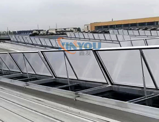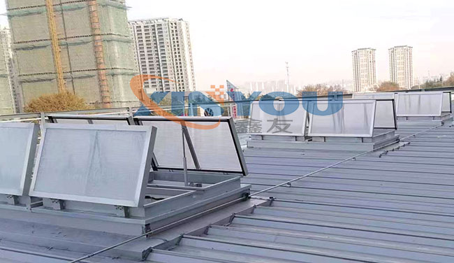 鑫友工業(yè)類電動消防排煙天窗主要適用于廠房等工業(yè)類大型建筑的屋頂采光、通風(fēng)、排煙,設(shè)計(jì)依據(jù)建筑標(biāo)準(zhǔn)設(shè)計(jì)圖集09J621-2。