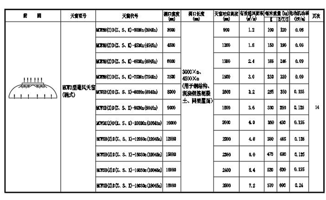 2.  通風天窗按有無閥板分為啟閉式和開敞式兩種類型。啟閉式有閥板,分為電動型、消防聯動型,電動型代號為D,消防聯動型代號為X,開敞式無閥板,代號為K。