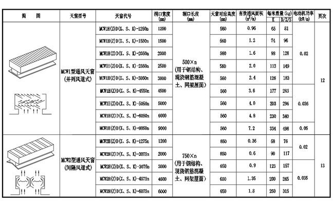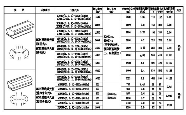 8.  MCW6型通風天窗(整體骨架式)——-MCW6型通風天窗骨架采用熱鍍鋅鋼板整體液壓成型骨架上壓制凹凸花紋,提高機械強度。天窗具有美觀性及良好的防腐蝕性能,產品標準化、系列化生產,裝配方便快捷。